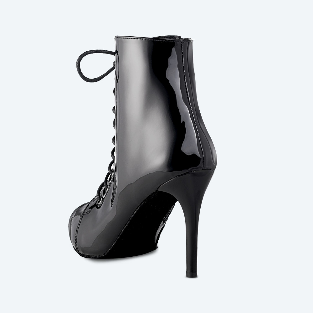 Reach new dance heights with the Glossy Heels Vegan. The glossy patent vegan leather, deep black color, and lacquered heel create a unique look that will catch eyes on the dance floor.