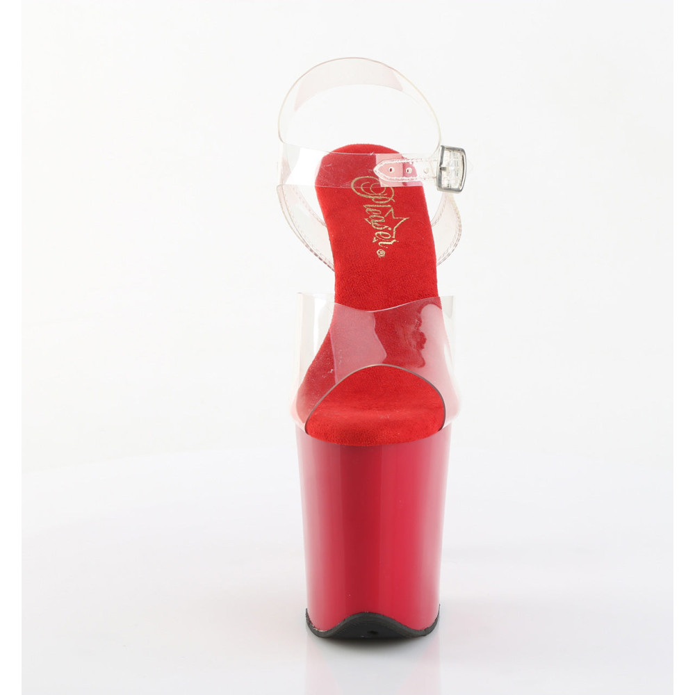 Pleaser Flamingo-808 - Clear/Red Ankle Strap Sandals with High Platform (20.3 cm Heel)