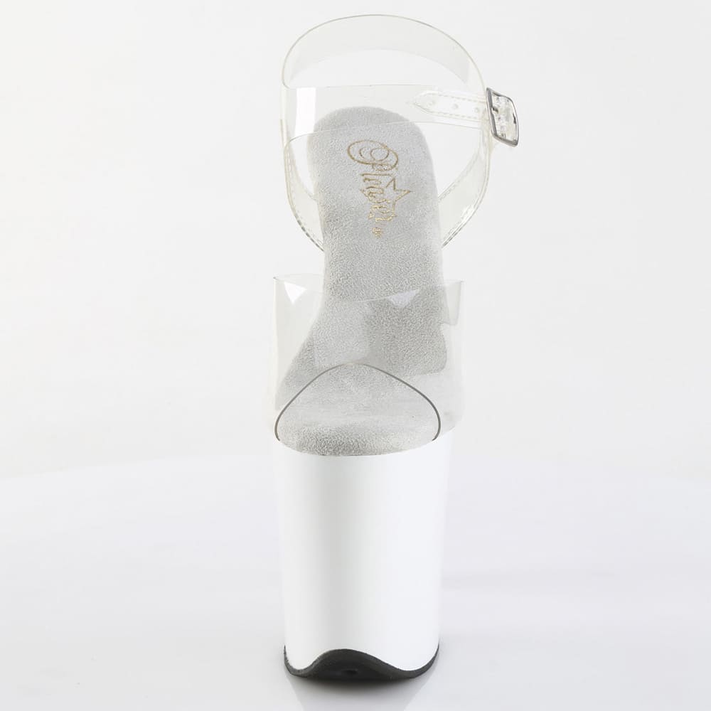Pleaser Flamingo-808 – Clear/White High-Platform Sandals (20.3 cm Heel)