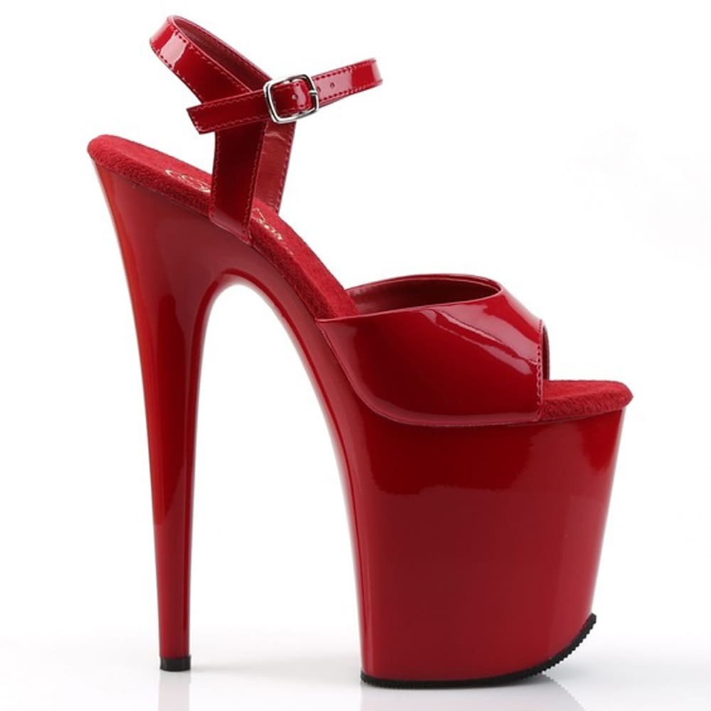 Pleaser Flamingo-809 – Red Ankle Strap Sandals with High Platform (20.3 cm Heel)
