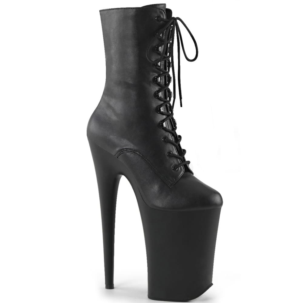 Pleaser Infinity-1020 - Black matte ankle boots (23 cm heel)